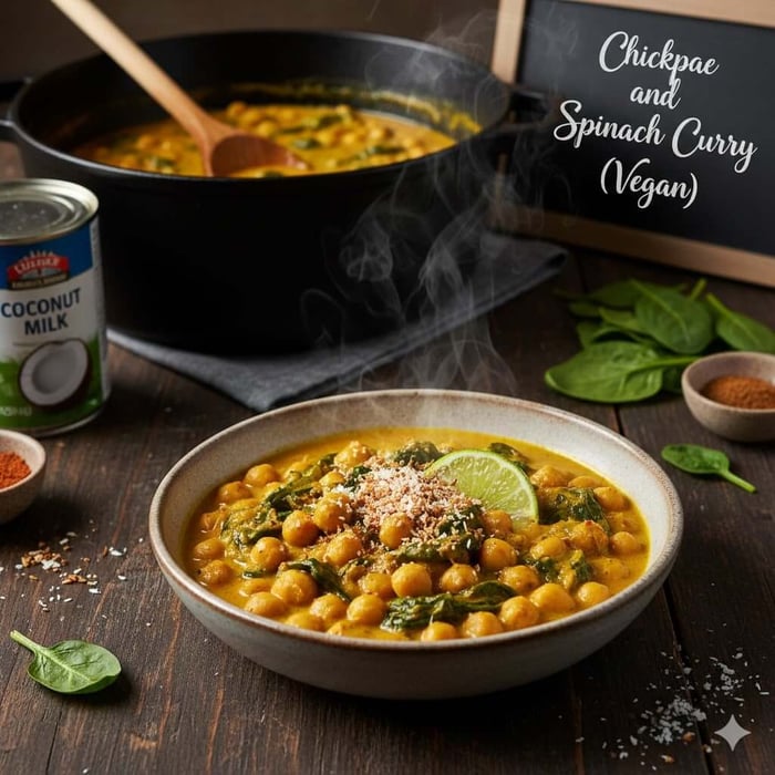 A creamy, plant-based curry that blends chickpeas and spinach with coconut milk and fragrant spices for a nourishing vegan dish.