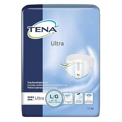 TENA® Ultra Incontinence Briefs deliver dependable protection for those with moderate to heavy incontinence needs. Designed with InstaDri Skin-Caring™ System, these briefs target wetness away from the skin to help maintain skin integrity. The superabsorbent microbeads in the core lock in liquid and reduce odor, while the soft, cloth-like material ensures discretion and comfort. Refastenable hook tabs provide a secure and adjustable fit, and the curved leg elastics offer superior leakage protection. Trusted by caregivers and healthcare professionals, TENA® Ultra Briefs balance high absorbency with all-day comfort.