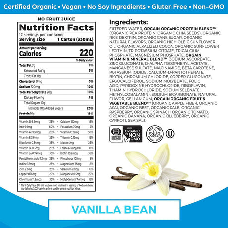 Orgain Organic Vegan Plant Based Nutritional Shake, Vanilla, CS/12