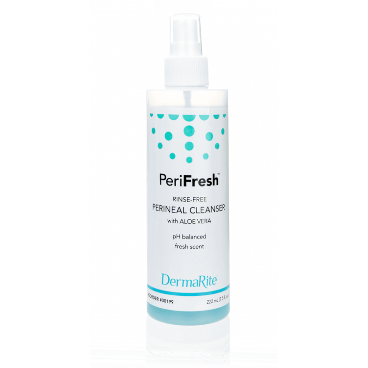 PeriFresh is our flagship perineal cleanser. PeriFresh contains aloe vera, which helps to moisturize sensitive skin areas and has a fresh-fruit fragrance that neutralizes odors on contact and leaves the patient feeling clean and refreshed. The non-irritating formula gently emulsifies and cleans dried urine and feces quickly.