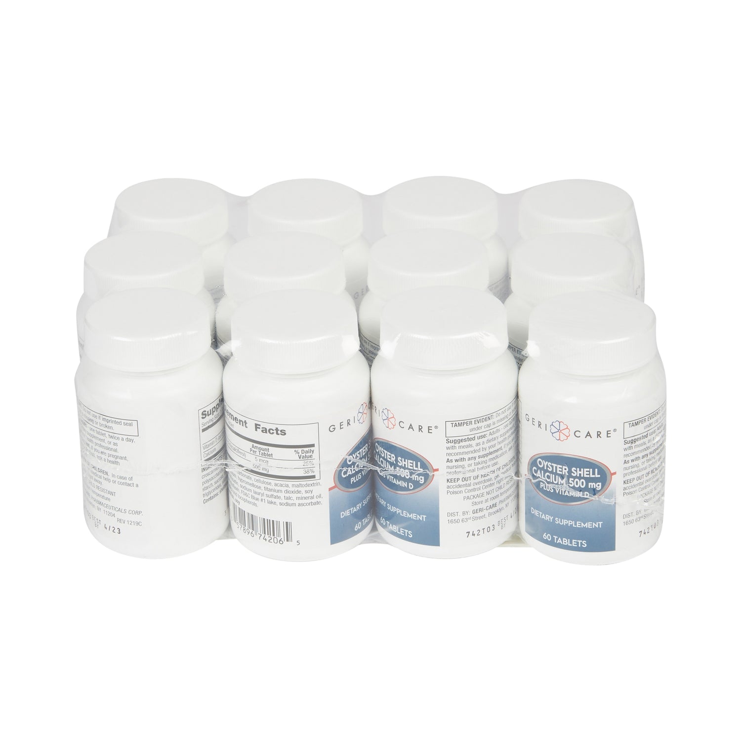 Geri-Care Oyster Shell Calcium Plus Vitamin D Supplement, 500 mg, 60 tablets