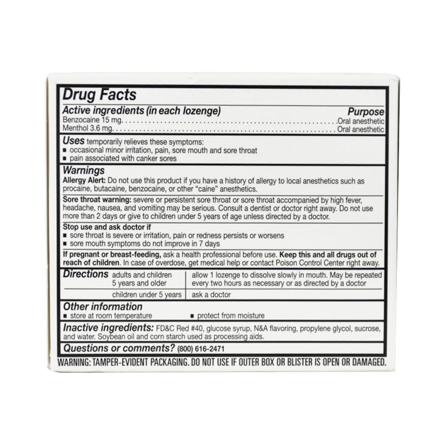 Major Sore Throat Relief Lozenge provides fast, soothing comfort for irritated, scratchy, or painful throats. Formulated with proven throat-soothing ingredients, these medicated lozenges help numb discomfort while easing dryness and irritation caused by colds, allergies, or overuse of the voice. Whether you're dealing with the first signs of a sore throat or lingering throat pain, this dependable lozenge offers targeted relief in a convenient, easy-to-dissolve format.