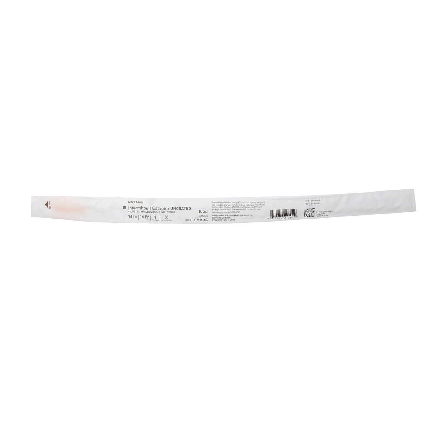 McKesson Coude Tip PVC Urethral Catheter, Male/Universal