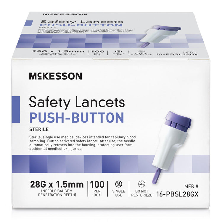McKesson Prevent Safety Lancet Fixed Depth Lancet Needle, Push Button, 100 ct
