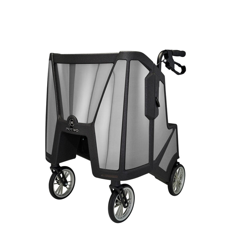 Experience newfound confidence with the Motivo Tour 4-wheeled rolling walker. This revolutionary rollator prioritizes your comfort and independence, ensuring you maintain your dignity at all times. With its sleek design, you can walk inside the walker, eliminating the need to hunch over and enabling a more upright posture. By promoting spinal alignment, the Tour significantly reduces back and neck pressure by up to 60%. Weighing a mere 18.5 pounds, this self-standing walker effortlessly rolls, even when its side panels are folded in. Crafted from a lightweight yet durable carbon composite, the Motivo Tour is proudly made in the USA.