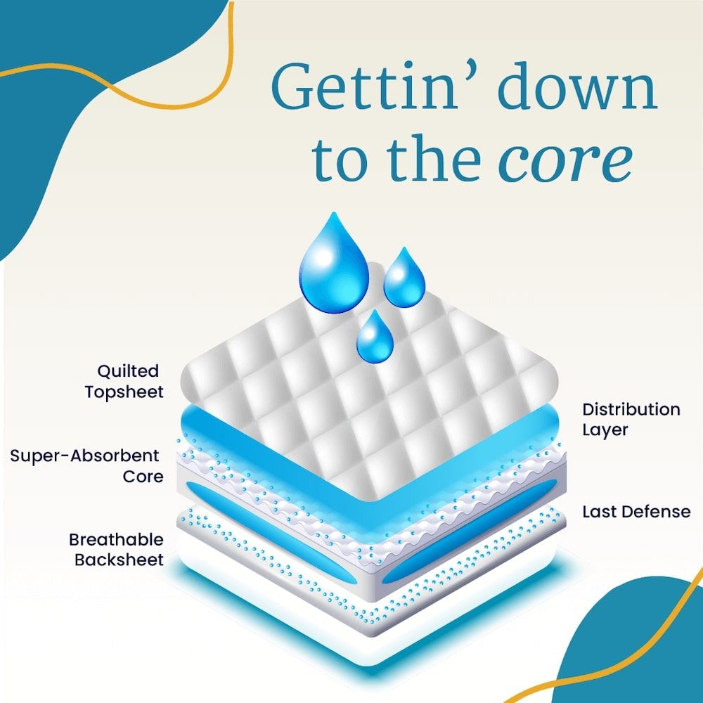 - • Extra-Wide Absorbent Core for Active Lifestyles