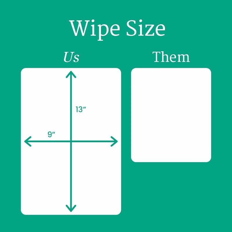 A: Each wipe measures 9" × 13", making them extra-large for full-body use. There is also a 7' x 8'