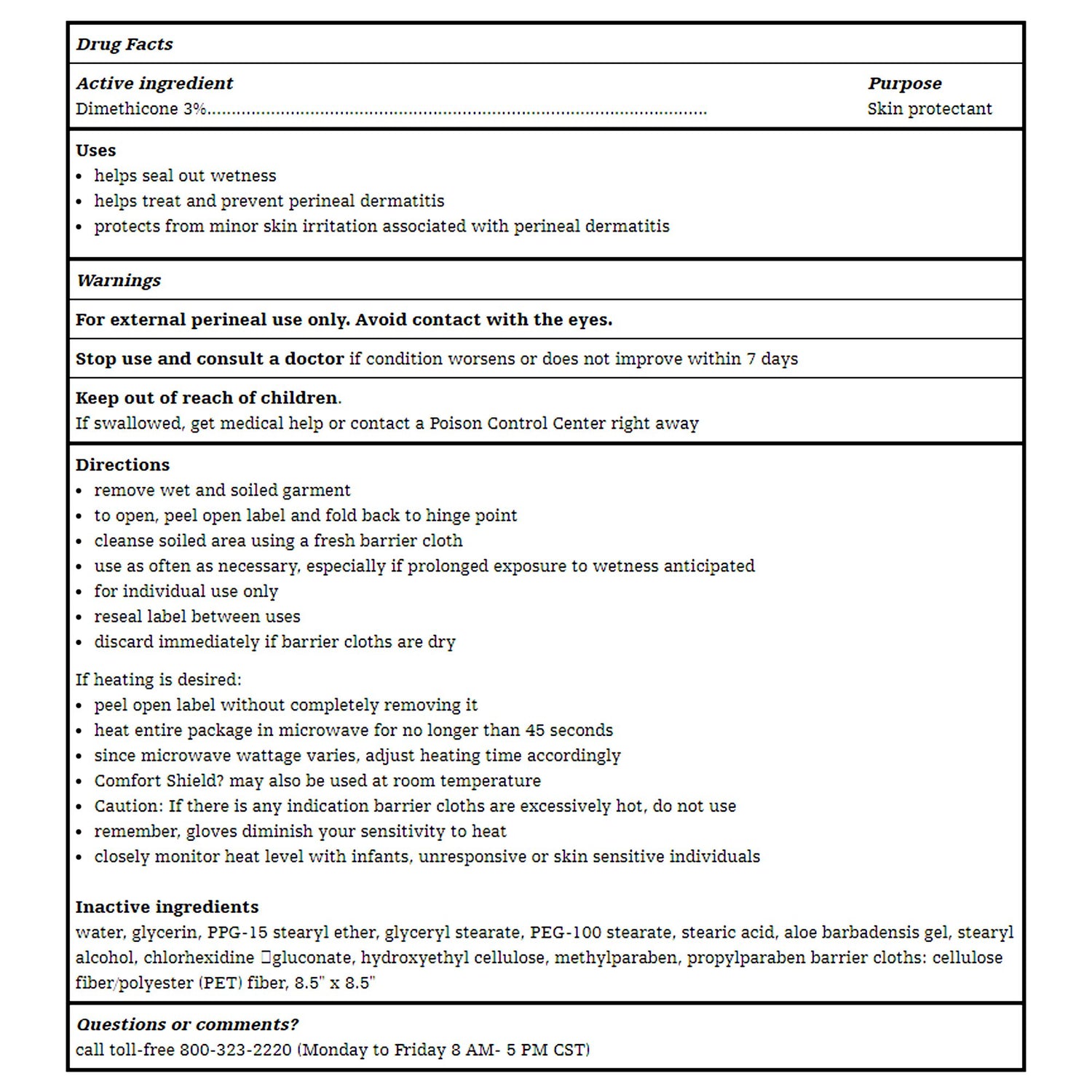 Incontinent patients are at an increased risk for developing incontinence-associated dermatitis (IAD). That puts them at risk for also developing a skin injury. Research shows that by applying a barrier after each incontinence episode, skin breakdown can be reduced. Comfort Shield Barrier Cream Cloths with dimethicone can help you provide consistent patient care by applying an effective barrier every time. Each cloth delivers all-in-one skin cleansing, moisturizing, deodorizing, treatment, and barrier protection.