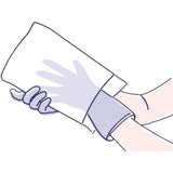 “NO RINSE” CLEANSING: Apply necessary amount of e.g. Seni Care Cleansing Body Cream to the glove or soiled areas, spread gently and wipe away residue with other side of glove after approximately 1 minute. If you use “no rinse formula” product, do not rinse to leave a delicate film on the skin.