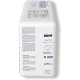 The Extra Dry System (EDS) non-woven layer facilitates quick and effective absorption, and a double wetness indicator assists caregivers in determining when a change is necessary. Notably, Seni Super briefs are latex-free, ensuring compatibility with users who may have latex allergies.