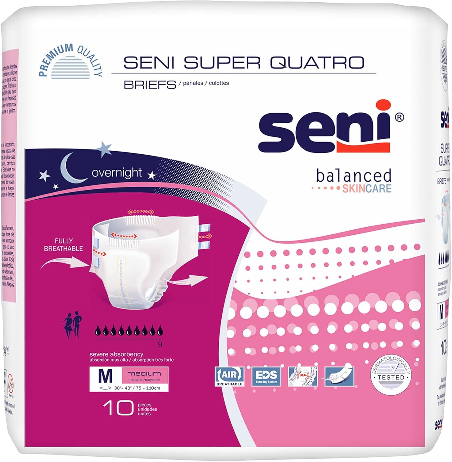 When dealing with severe urinary or fecal incontinence, you need more than just a standard brief; you need the maximum protection offered by Seni Super Quatro Adult Diapers. Engineered for those with heavy to very heavy leakage, these premium briefs provide the peace of mind required for both daytime activities and uninterrupted overnight rest. The Quatro is the most absorbent option in the Seni line, specifically designed to handle large voids while maintaining skin health and user dignity.