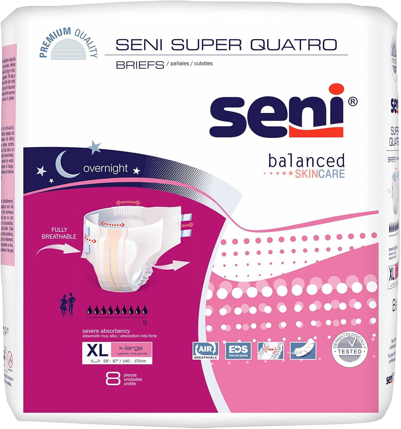 A: Absolutely. The Quatro is Seni’s highest absorbency level, making it the ideal choice for extended overnight wear and heavy nighttime voids.